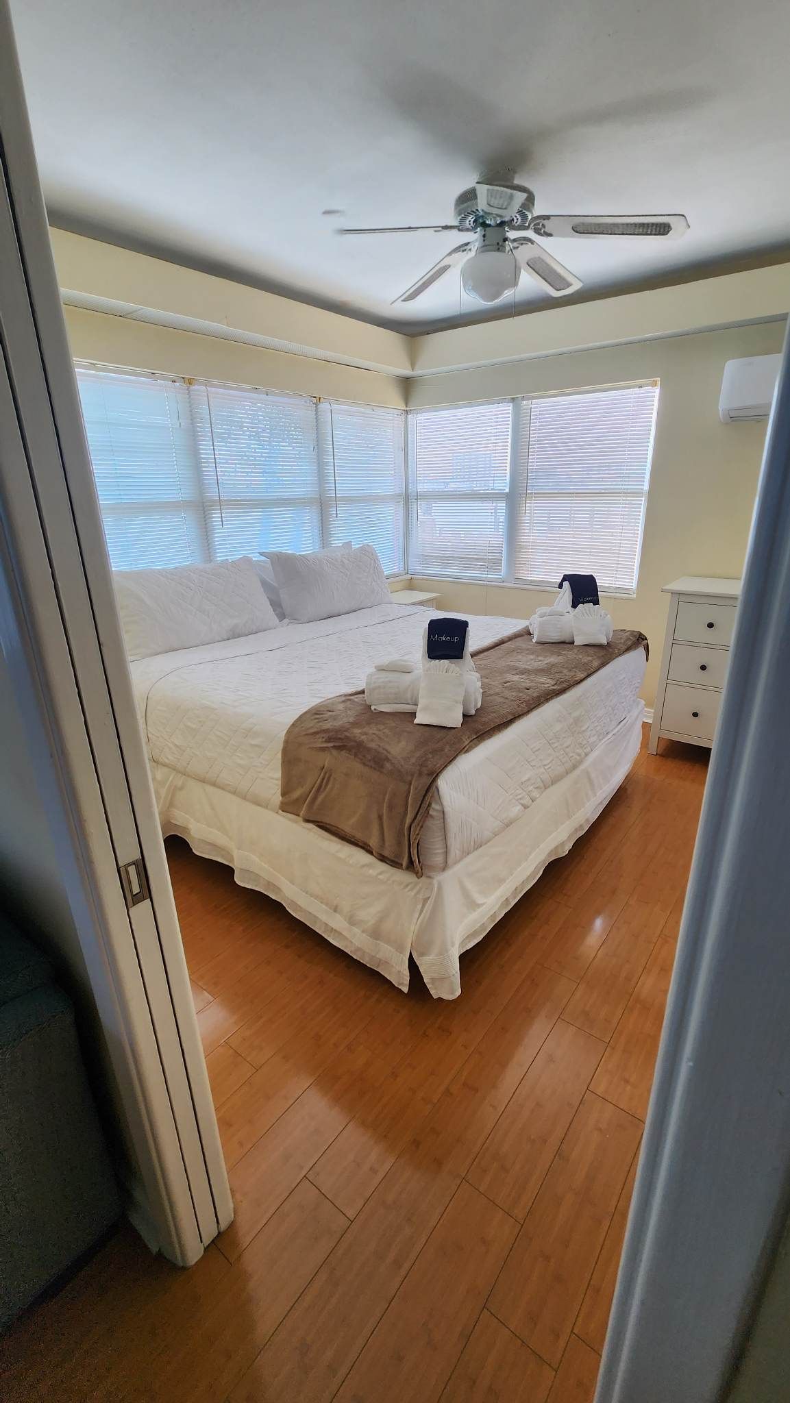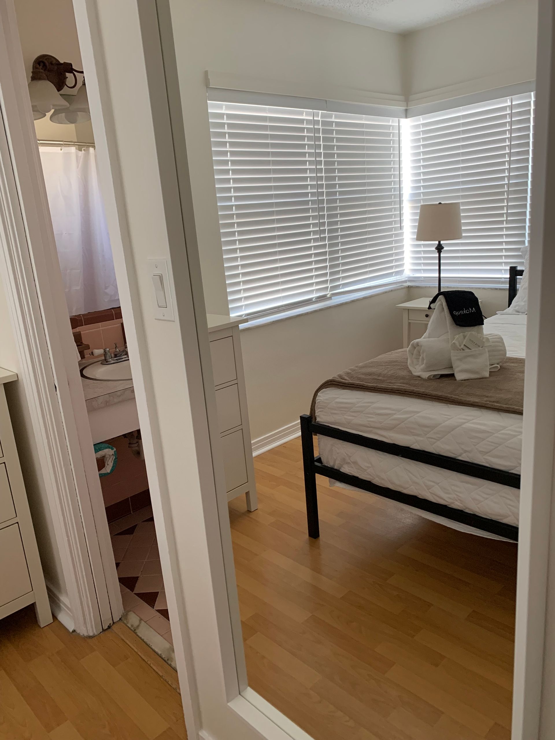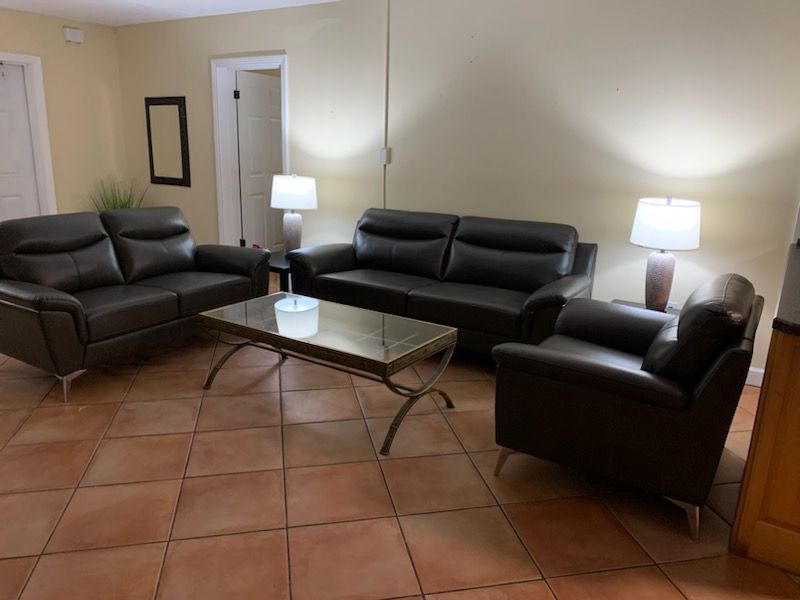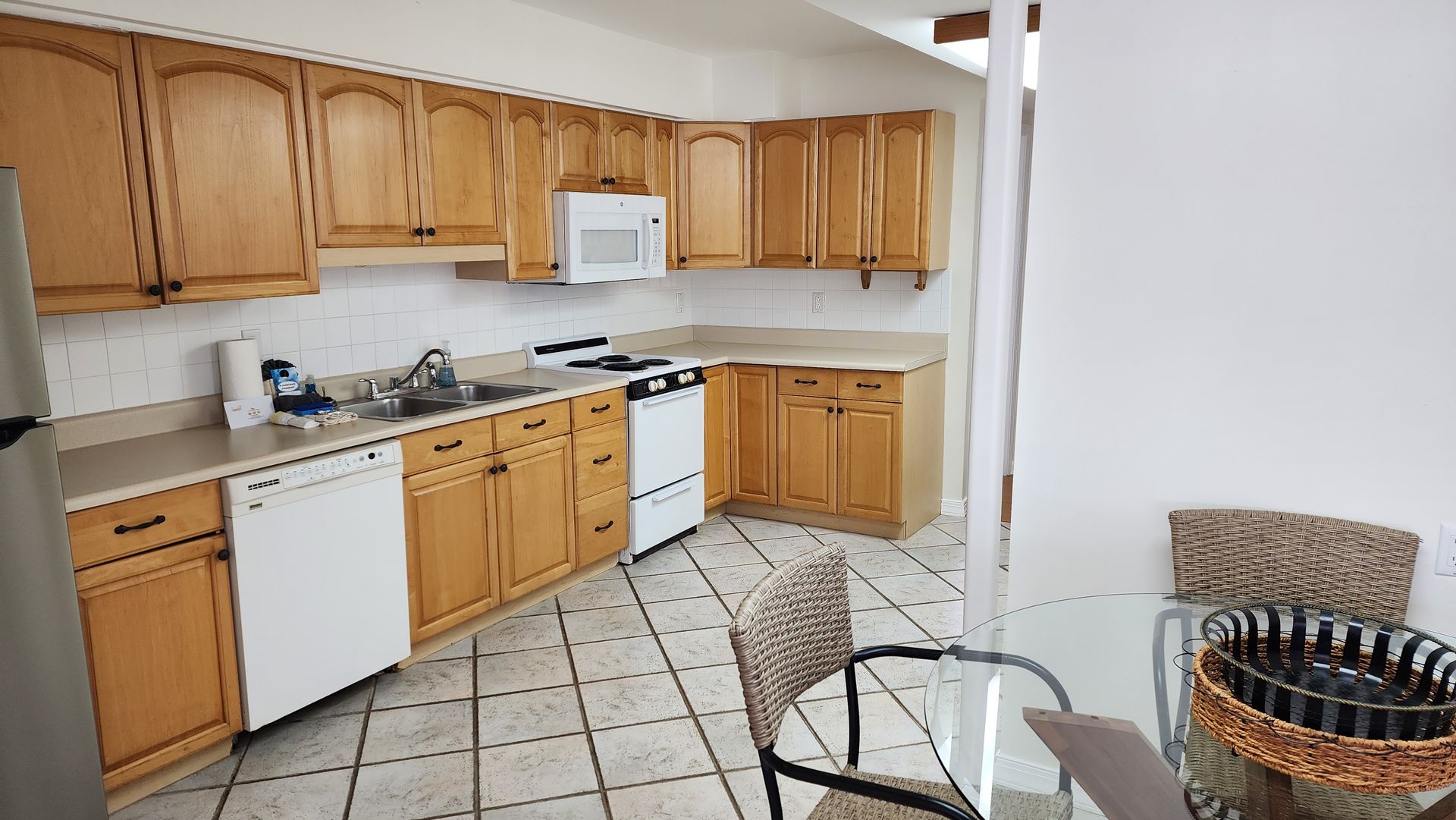 Fully remodeled 2 bedroom / 2 bathroom unit with full kitchen, dining room, and living room. The kitchen features a refrigerator/freezer, a cooktop stove, a toaster-oven/air-fryer combo, coffee maker, blender, and more! Both bathrooms have walk-in showers and single vanity sinks.