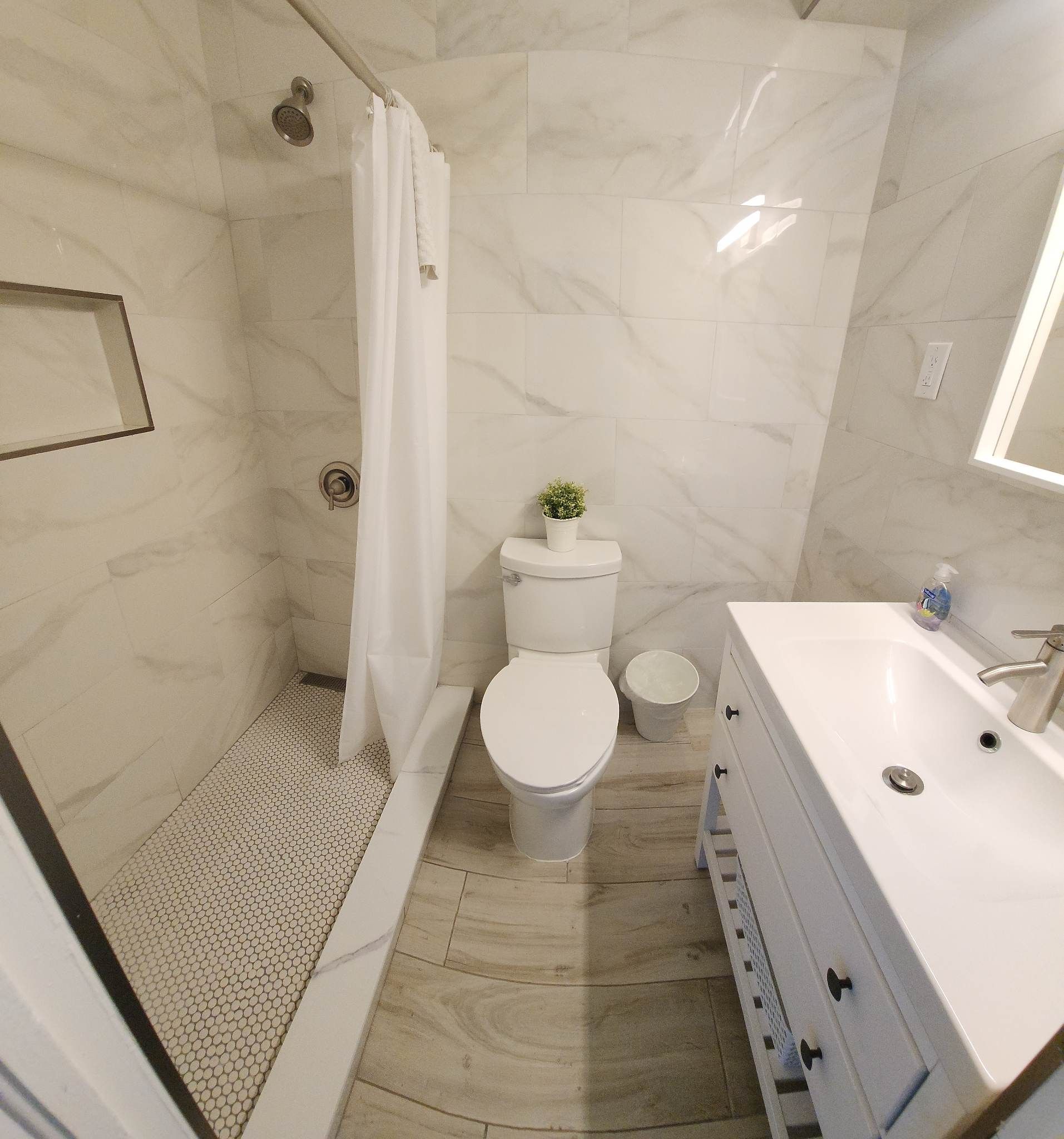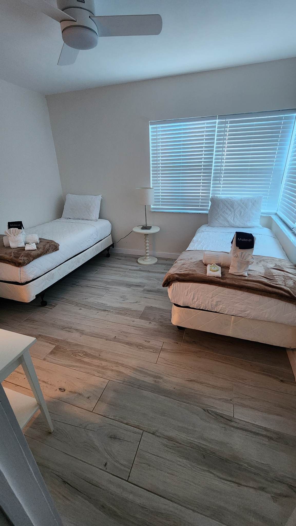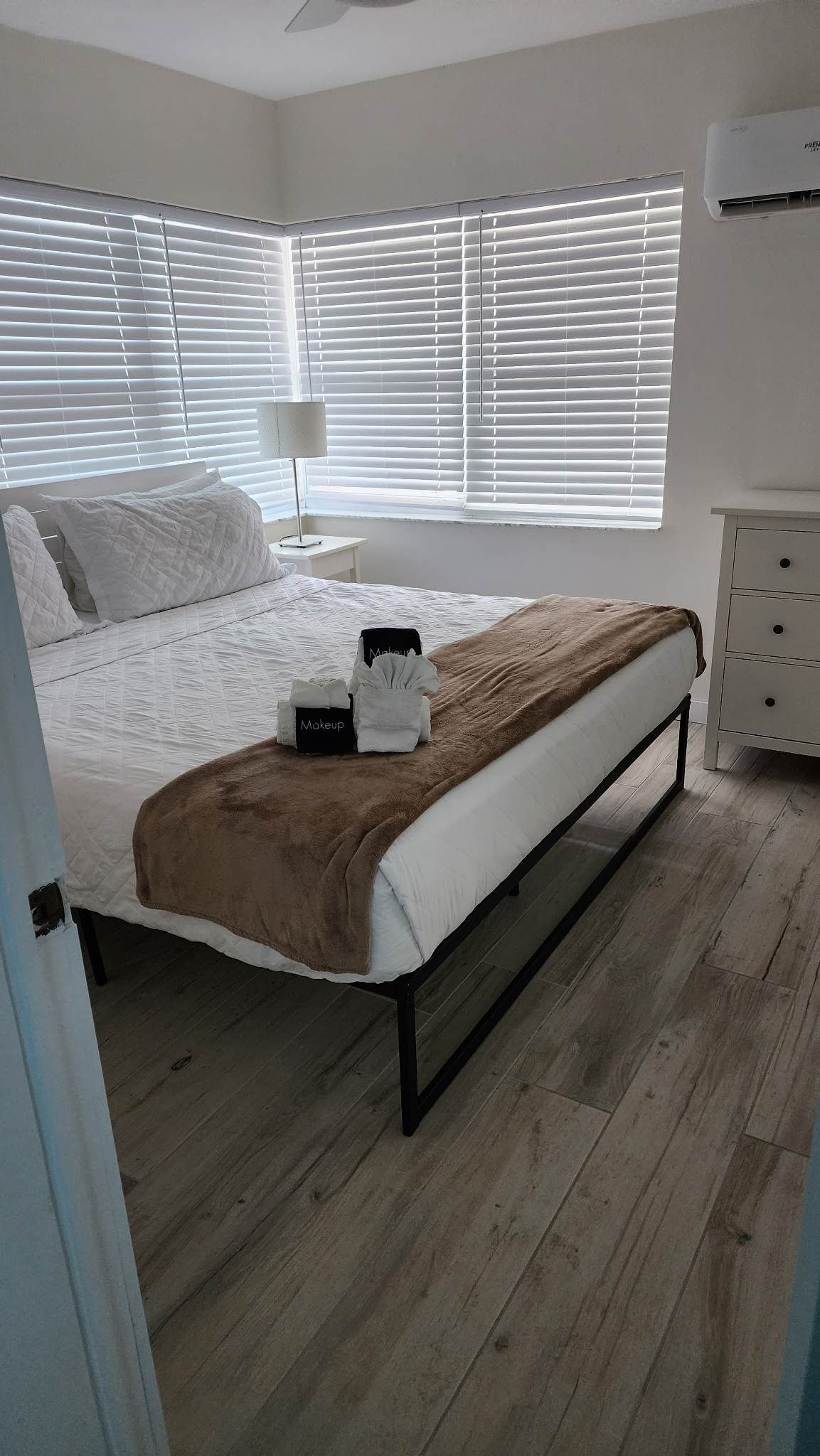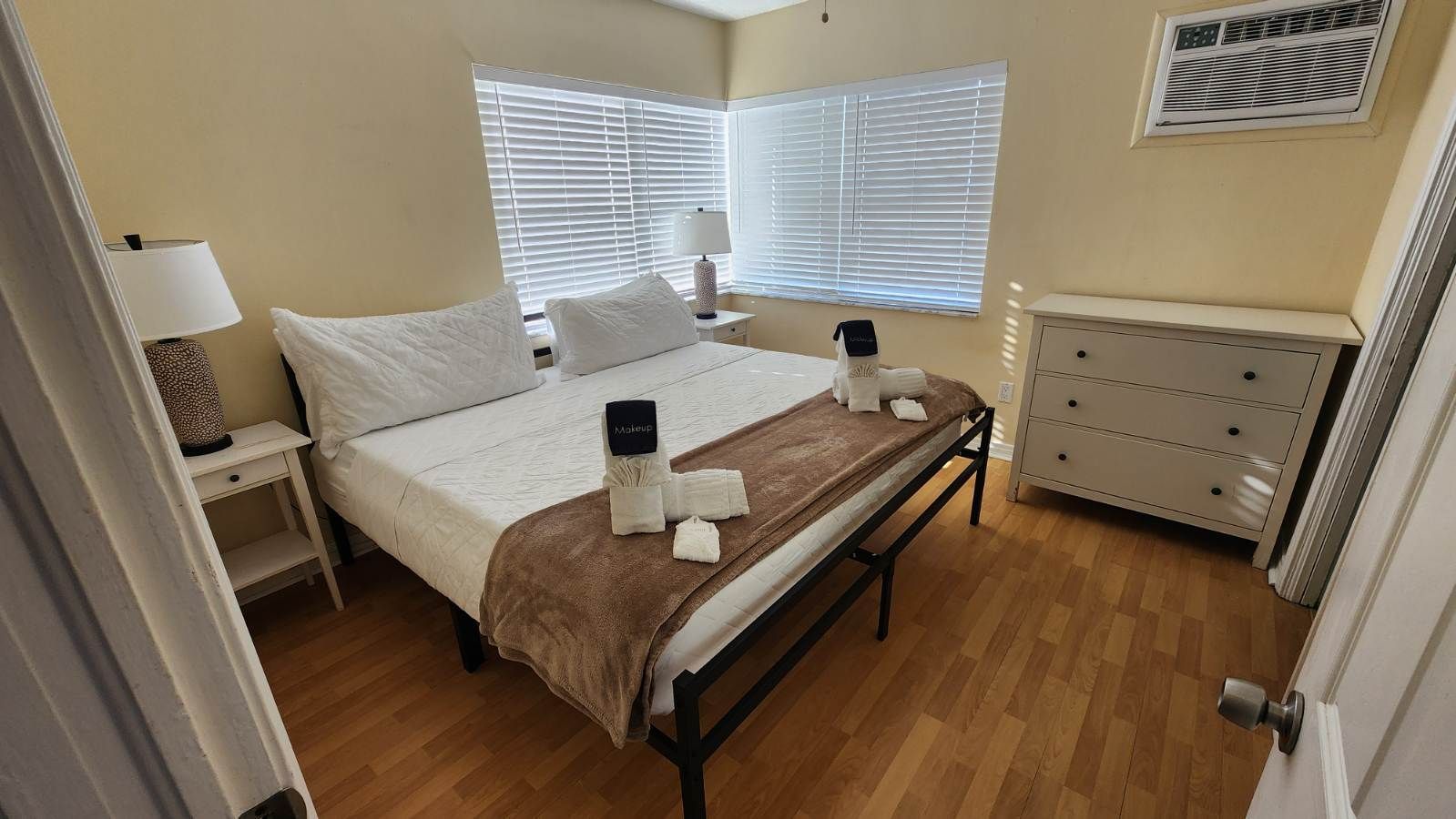 Fully remodeled 2 bedroom / 2 bathroom unit with full kitchen, dining room, and living room. The kitchen features a refrigerator/freezer, a cooktop stove, a toaster-oven/air-fryer combo, coffee maker, blender, and more! Both bathrooms have walk-in showers and single vanity sinks.