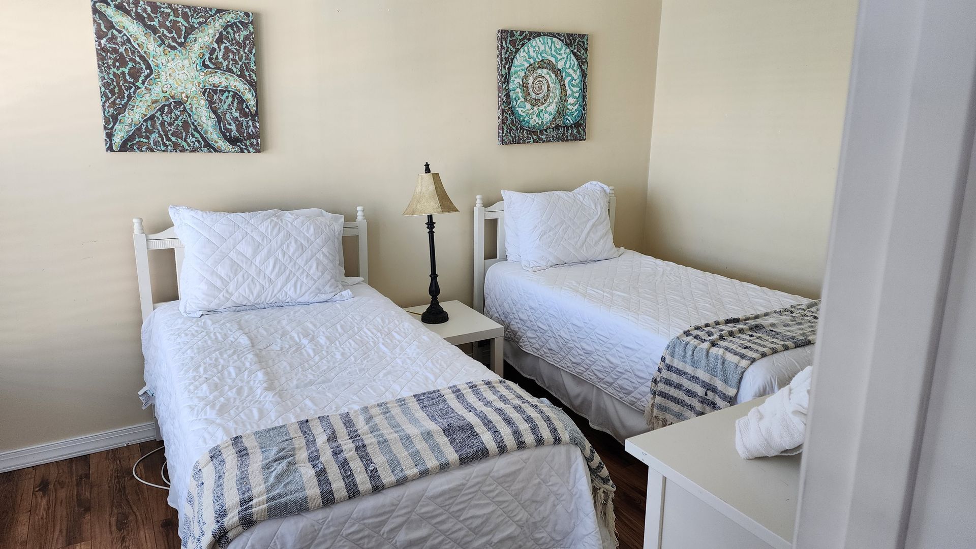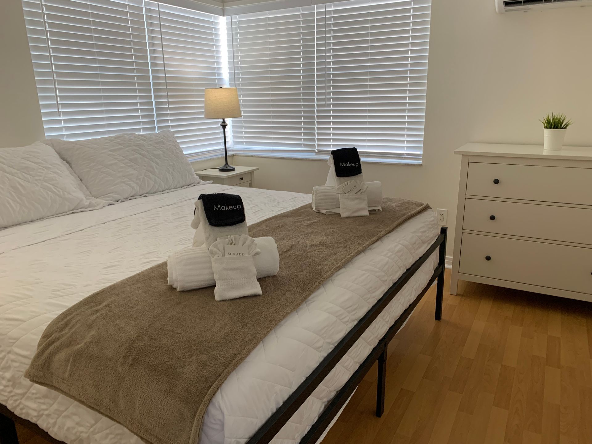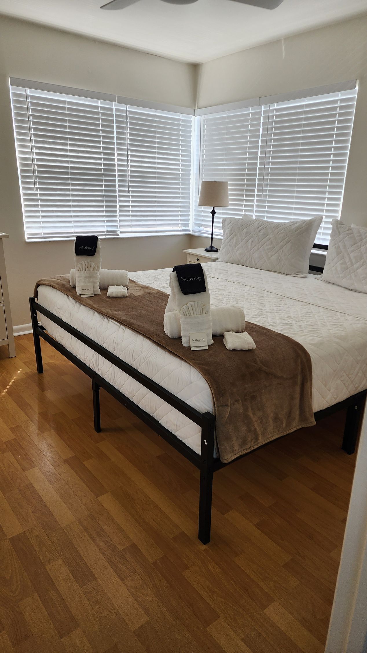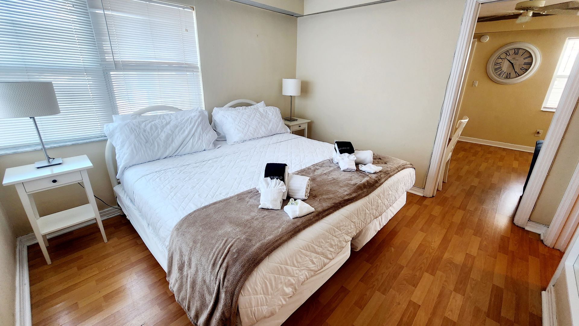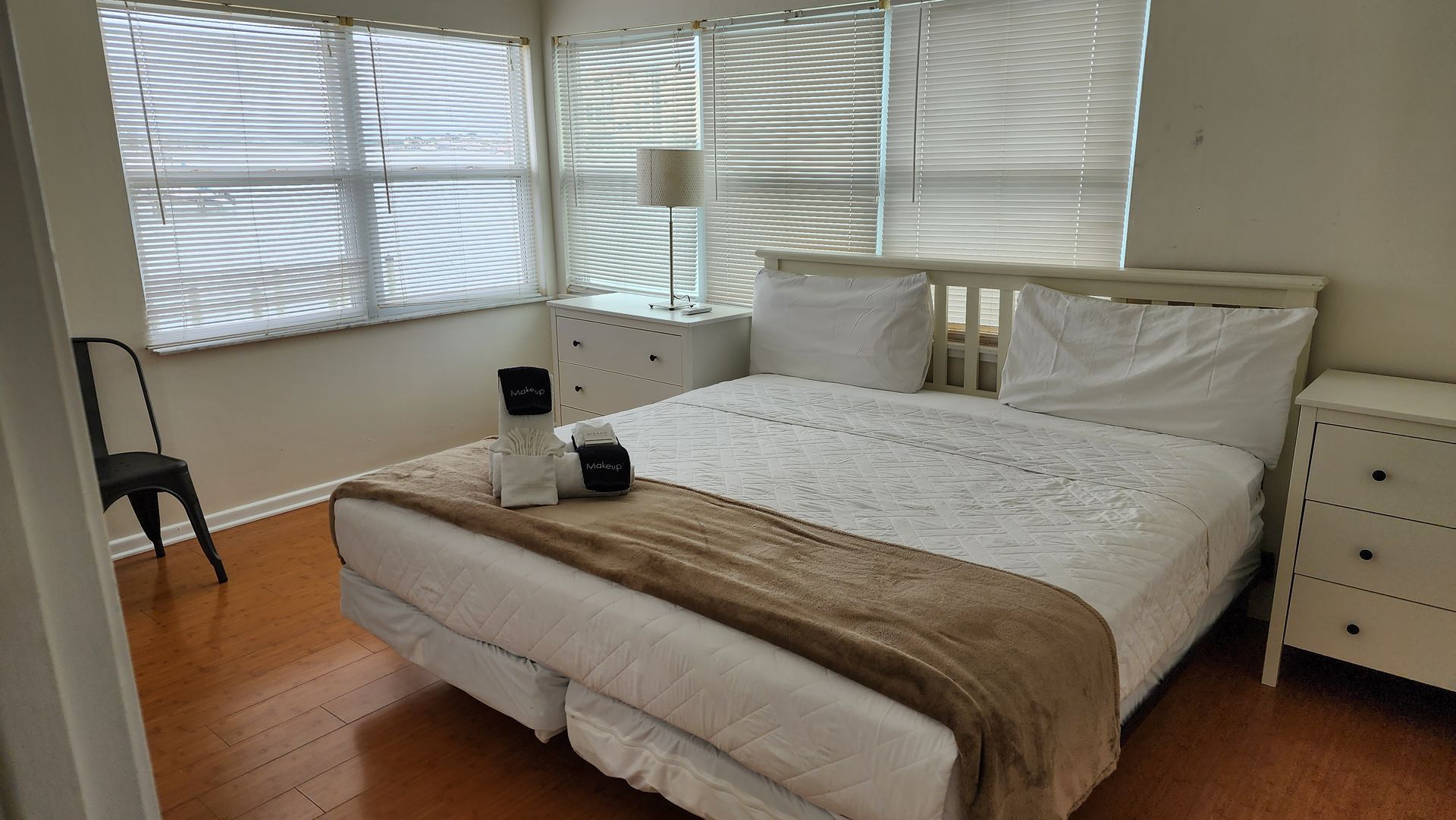 Waterfront 2 bedroom / 2 bathroom large condo unit on the 1st floor with full kitchen, dining room, and living room. This is one of our largest rooms available at approx. 1,000 sq ft. The kitchen features a refrigerator/freezer, 4-burner stove w/oven, dishwasher, microwave, coffee maker, blender, and much more! The first bedroom has a king-size bed and en-suite bathroom with a walk-in shower and vanity sink. The second bedroom has two full/double-sized beds and an en-suite bathroom with a tub/shower combination and vanity sink.