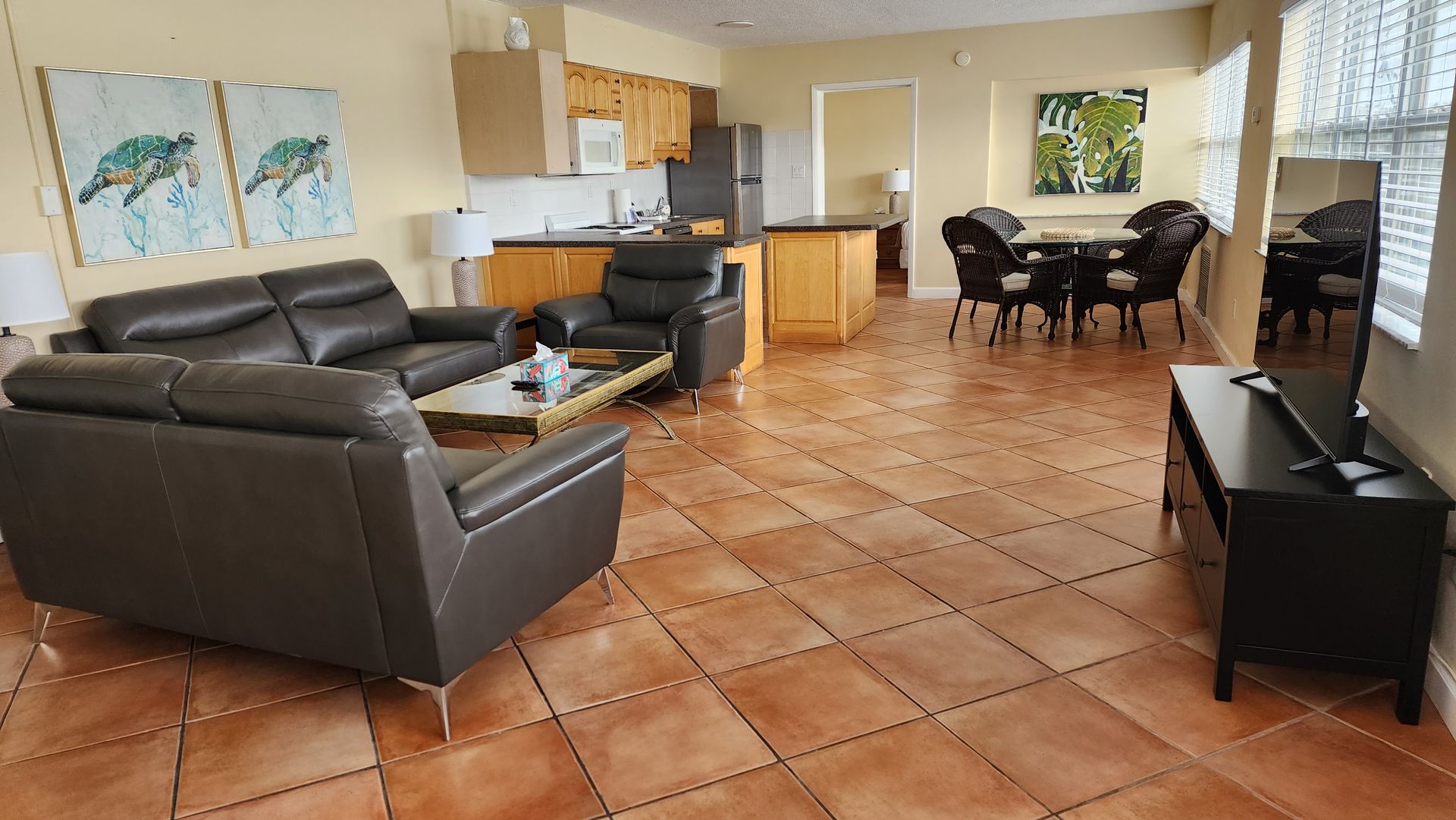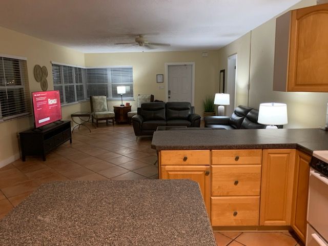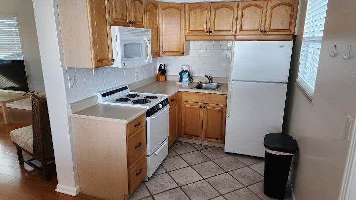 1 bedroom / 1 bathroom large condo unit with full kitchen, dining room, and living room. This property is only a 5-minute walk to award-winning Clearwater Beach! The kitchen features a refrigerator/freezer, 4-burner stove w/oven, a microwave, coffee maker, blender, and more! The full bathroom has a bathtub/shower combination and either single or double vanity sinks.