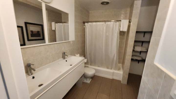 1st floor 1 bedroom / 1 bathroom unit with full kitchen. The kitchen features a refrigerator/freezer, 4-burner stove w/oven, a microwave, coffee maker, blender, and more! The full bathroom has a bathtub/shower combination and single vanity sinks.